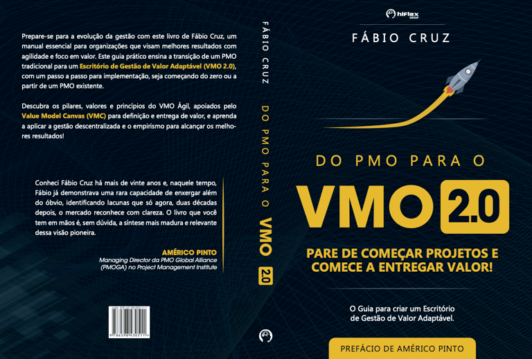 O VMO 2.0 é um framework publicado em um livro que apresenta o passo a passo para criar um VMO do zero ou levar um PMO para o VMO de forma detalhada e com case para referência.